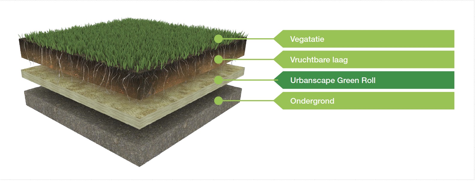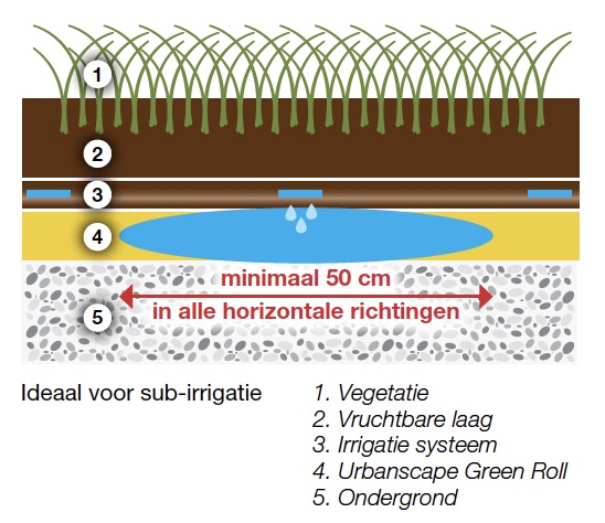 Urbanscape Green Roll wird aus 100 % natürlichen Gesteinsfasern hergestellt und unter dem Rasen oder in Pflanzgefäßen eingesetzt. Wasser und Nährstoffe werden in der Urbanscape Green Roll gespeichert und stehen dem Rasen oder der Bepflanzung jederzeit direkt zur Verfügung. Green Rolls verbessern die Bodenqualität und helfen Pflanzen, unter schwierigen Bedingungen zu überleben. Durch die Speicherung in der offenen Struktur kann das Wasser weder verdunsten noch im Boden versickern.