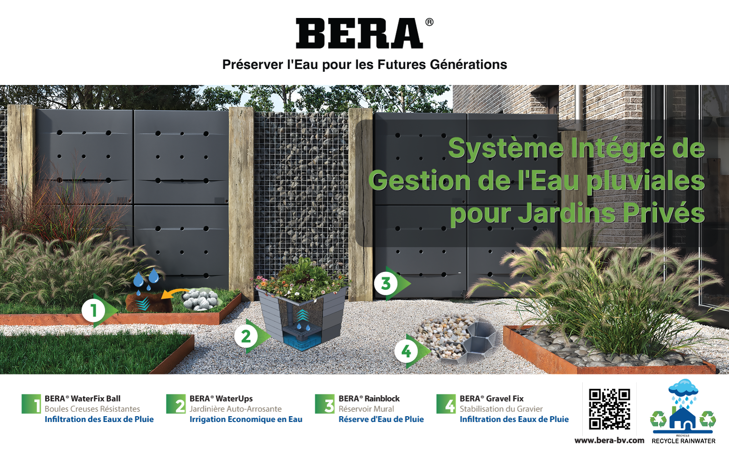 BERA® est la marque commerciale de BERA BV, basée aux Pays-Bas, responsable du développement de systèmes de stabilisation, de solutions d’économie d’eau et de systèmes de terrasses.
